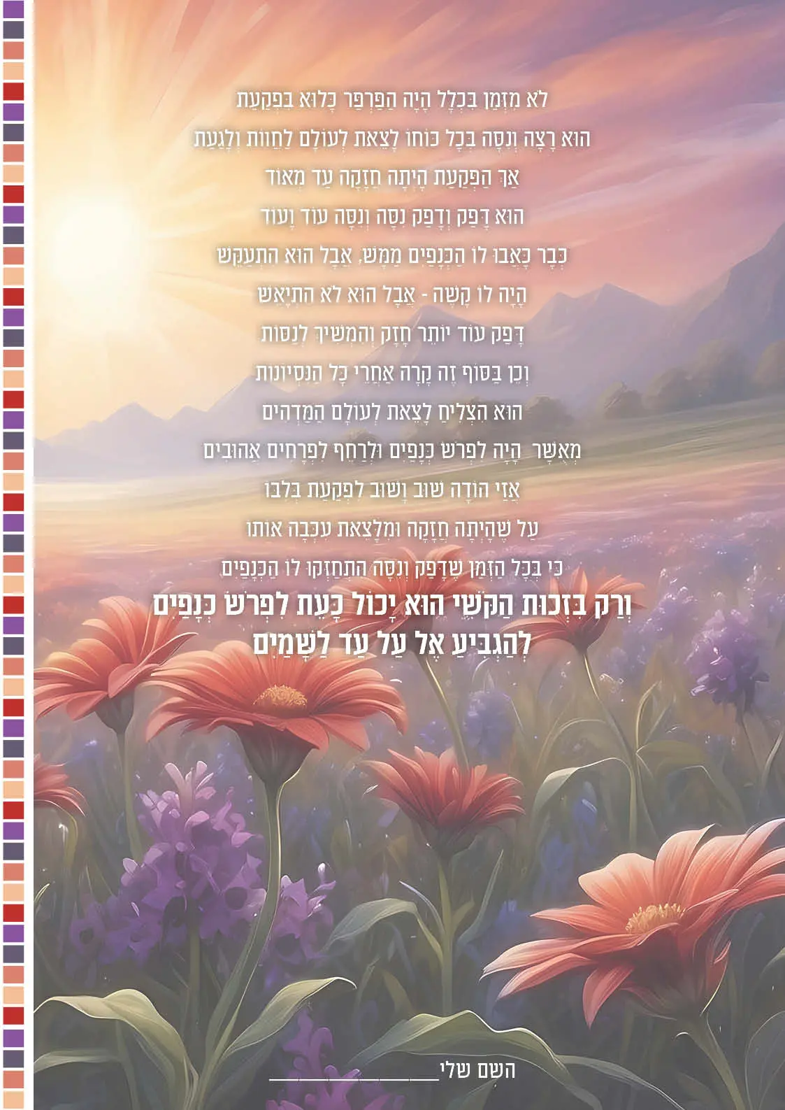מְאֻשָּׁר הָיָה לִפְרֹשׂ כְּנָפַיִם וּלְרַחֵף לִפְרָחִים אֲהוּבִים