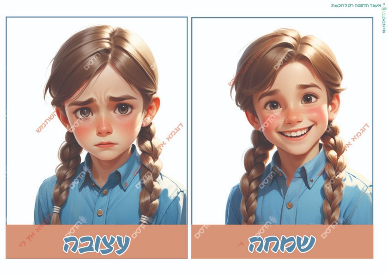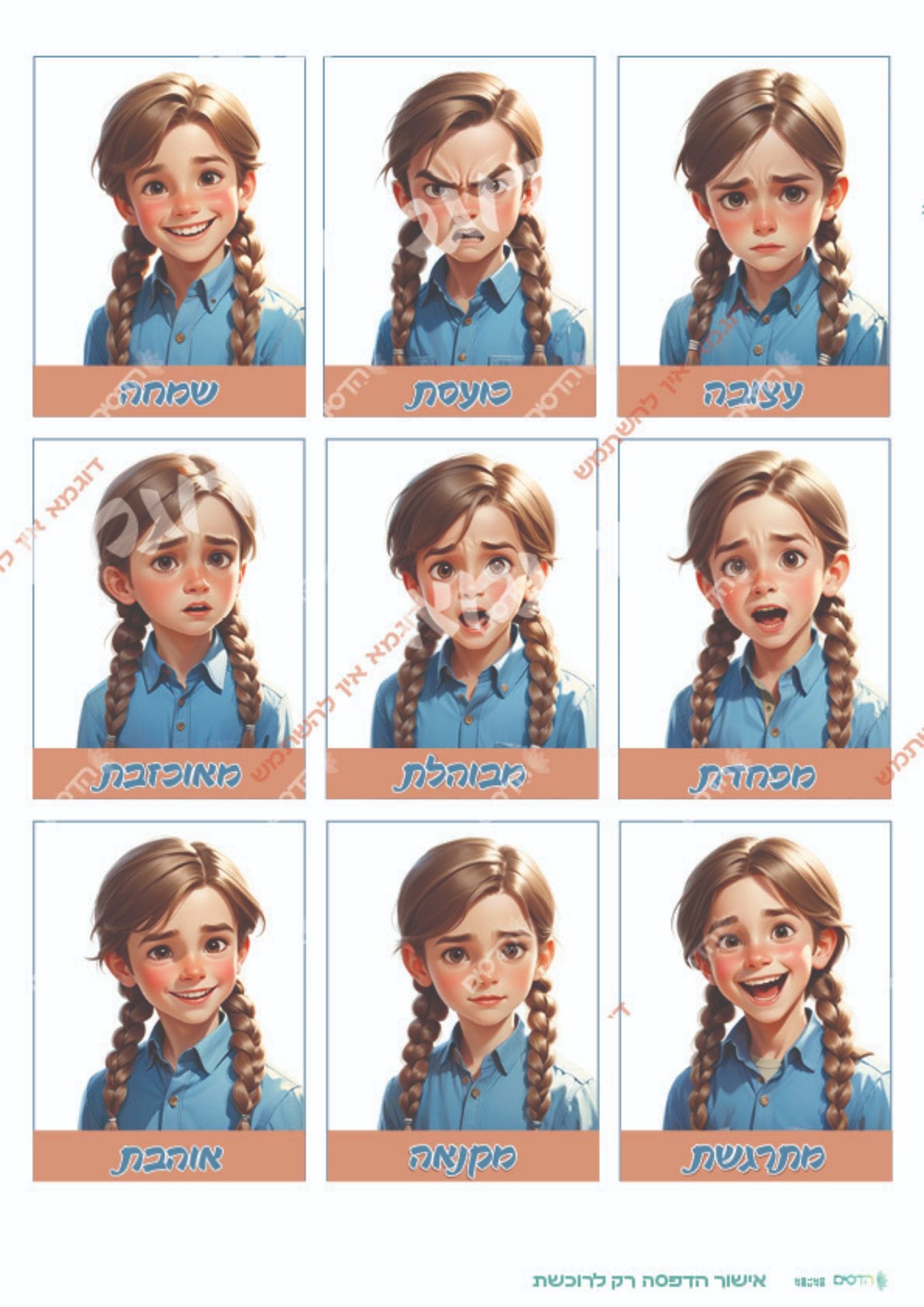 -כל רגש בנפרד על דף A5 (2 בA4)