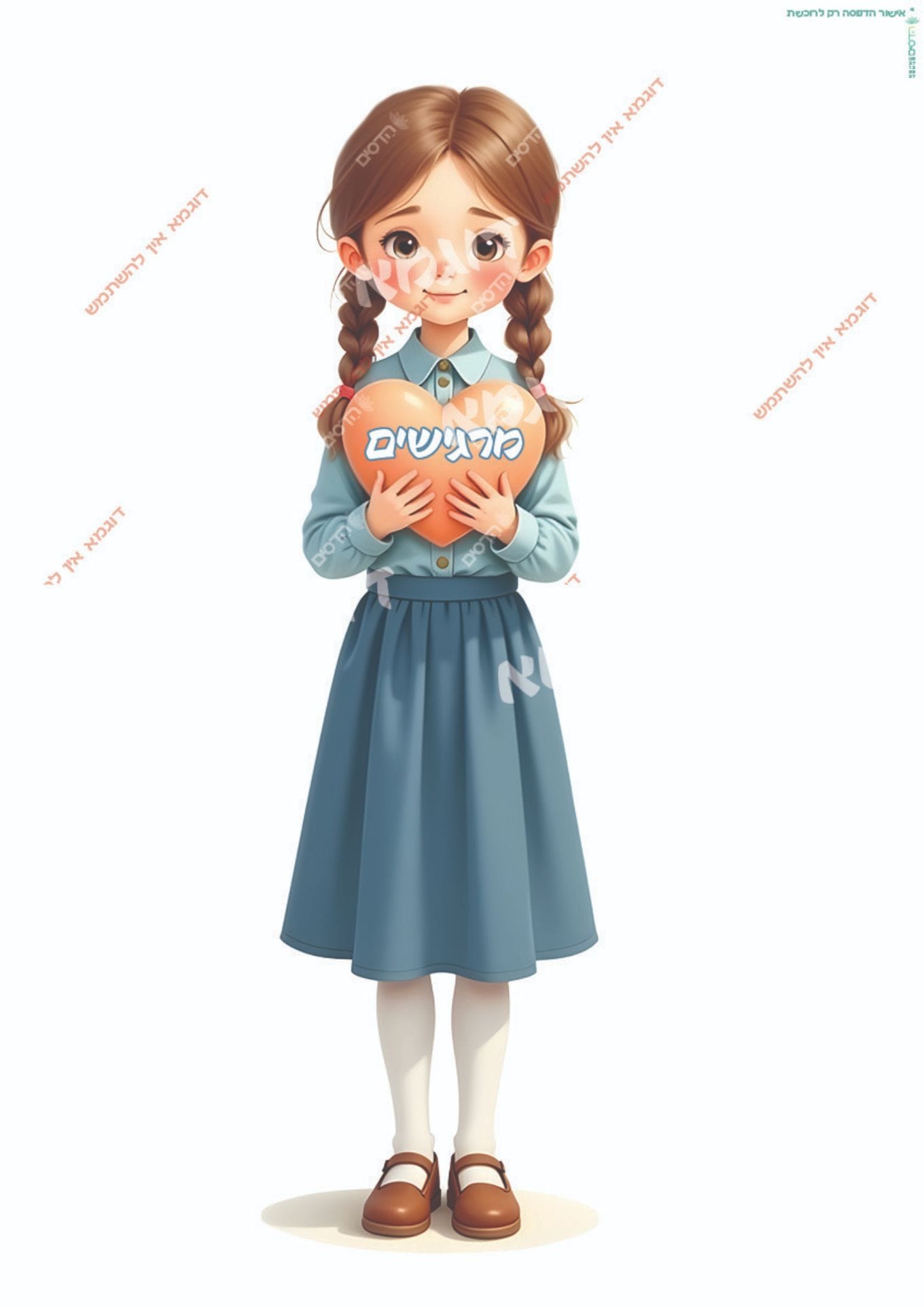 -דמותג חמודה מחזיקה לב -עם כיתוב מרגישים על גודל A3